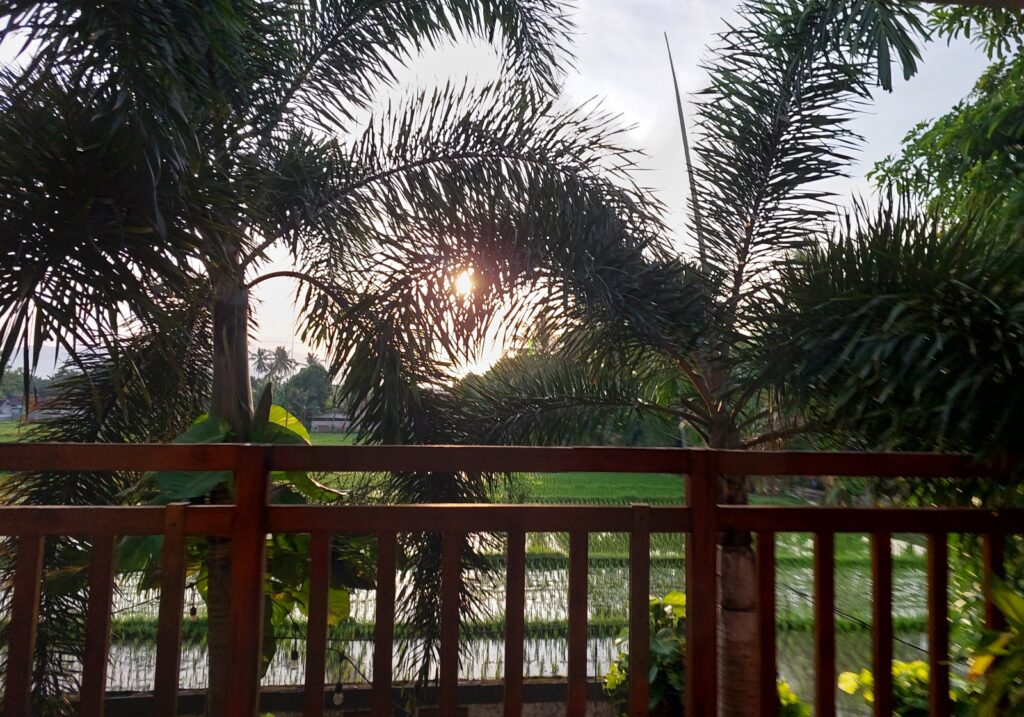 Pas mau ke bus saya baru ingat, minuman manis habis. Jadi saya balik ke toko untuk ambil minuman. Harganya 5 rb an, waduh gakbisa QRIS ini. Harus pakai cash. Bu Rai malah meneriaki, “Sudah Mbak, saya bayarin saja (minumnya). Sini.”