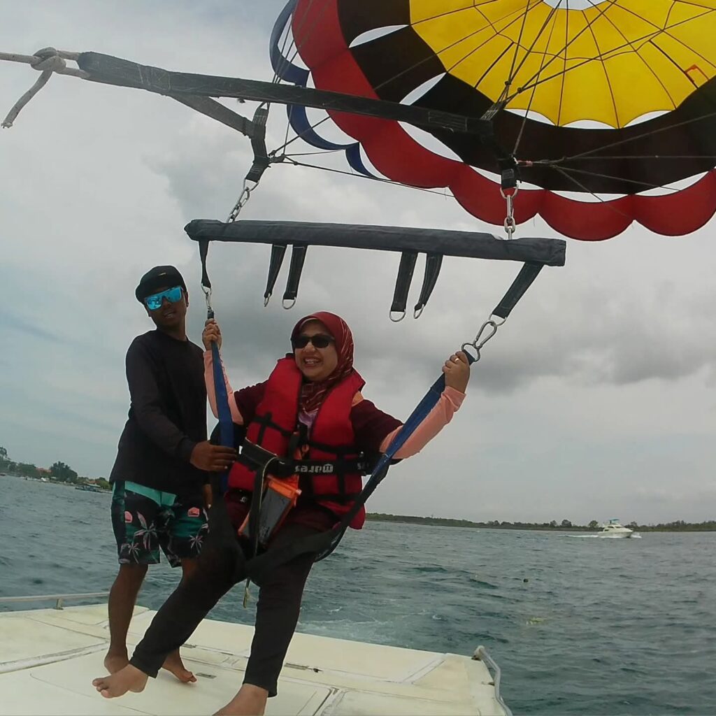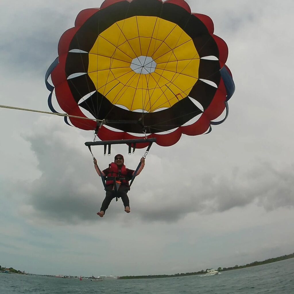 Parasailing di Tanjung Benoa. Dokumentasi Ari Kinoysan Wulandari.