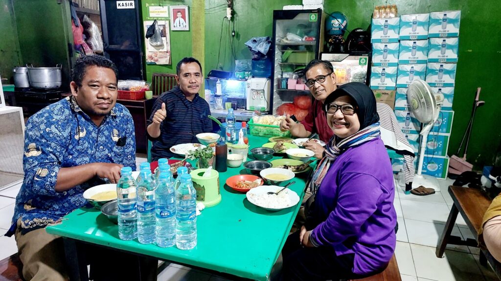 Saya, Pak Erens, Pak Ode, Gus Jalil di rumah makan Maros, by pass Kendari. Dokumentasi Ari Kinoysan Wulandari.