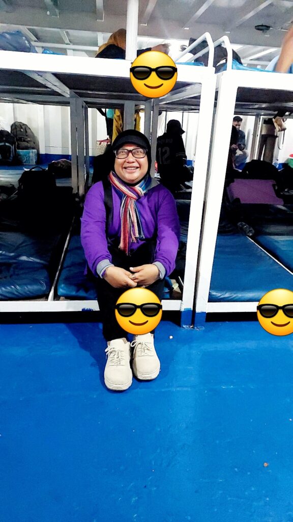 Sudah bangun usai Shubuh di dalam kapal. Dokumentasi Ari Kinoysan Wulandari.