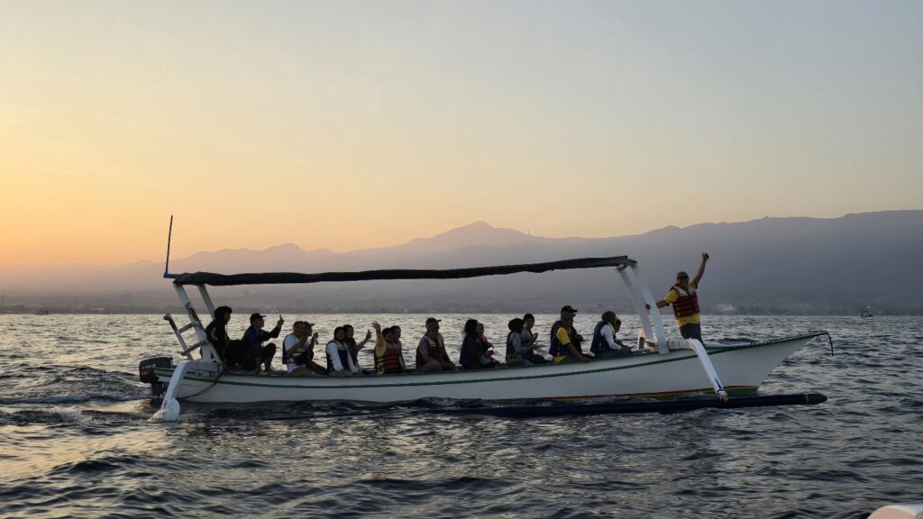 Saya dan teman teman satu perahu untuk melihat lumba-lumba di Lovina. Dokumentasi Ari Kinoysan Wulandari.