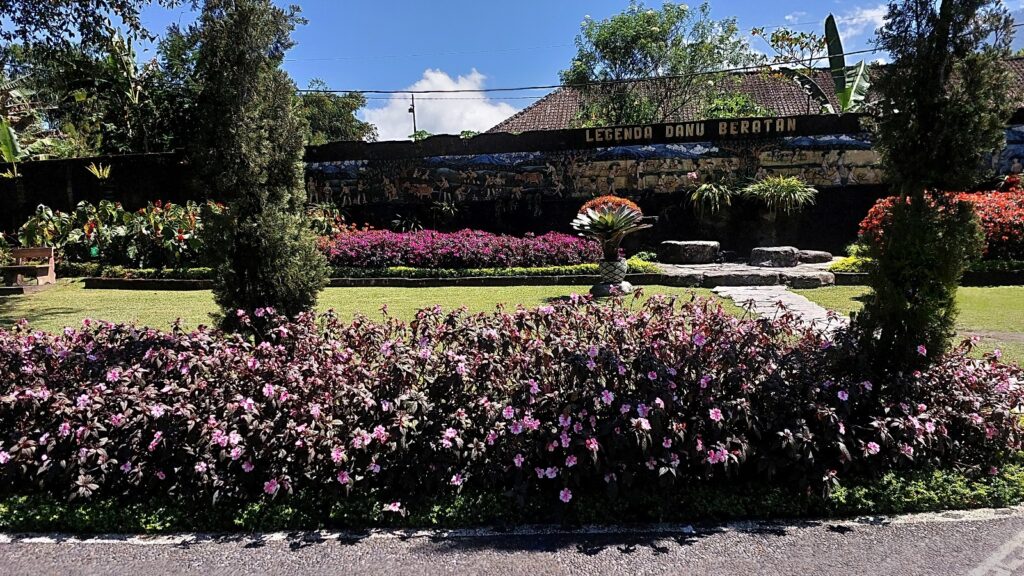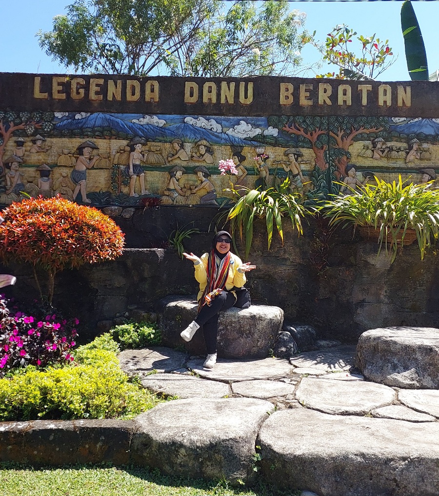 Kisah asal mula Danau Beratan terpampang pada ilustrasi timbul di belakang saya. Dokumentasi Ari Kinoysan Wulandari.