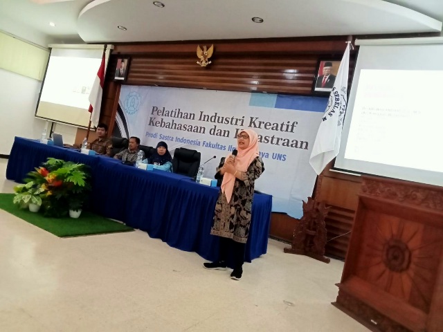 Sharing pengalaman tentang penulisan di FIB, UNS, Solo. Dokumentasi Ari Kinoysan Wulandari.