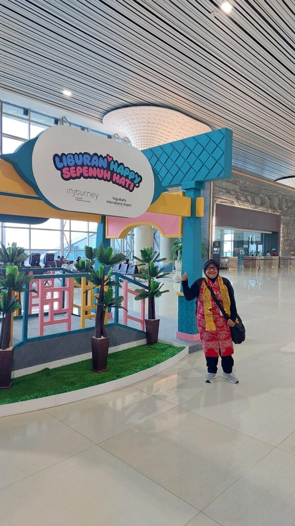 Dan seperti kebiasaan, setelah menyapa kawan duduk saya, sebentar saja duduk di bus langsung tidur. 😂🙈 Bangun sudah dekat YIA. Turun, mider sebentar. Njur saya makan bekal. Lha orang-orang yang datang baru sedikit, masih lama. Wes beberes foto-foto dll masuk bandara dengan syukur melimpah saya. Ya Rabb, saya penuhi panggilan-Mu. Mudahkan semua urusan kami. Kabulkan semua doa kami. Ampunilah semua dosa-dosa kami. Belum berangkat pun, saya wes ndremimil berdoa. Karena kita nggak pernah tahu doa yang mana, di saat apa yang dikabulkan oleh Allah.