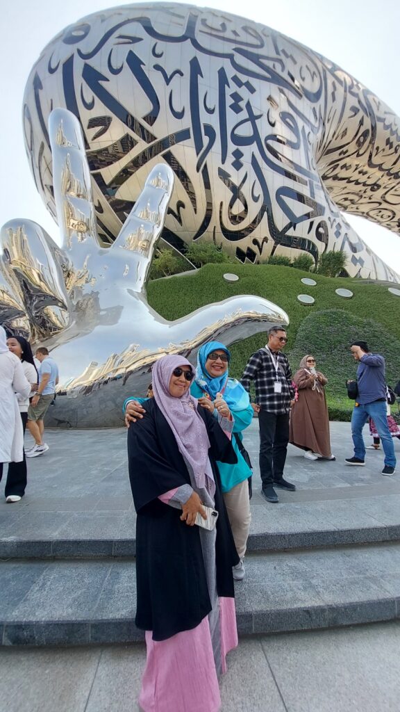 Kesan pertama saya, Dubai bersih, rapi, sejuk, tertib, mewah, dan jangan tanya soal harga di sini 😁 Fantastik juga alias cukup larang nggo ukuran kantong saya. Di sini saya mung beli cokelat dan es krim. Dua jajanan favorit yang bisa memperbaiki mood. Saya mengikuti semua kegiatan tour dari Dewangga dengan senang hati.