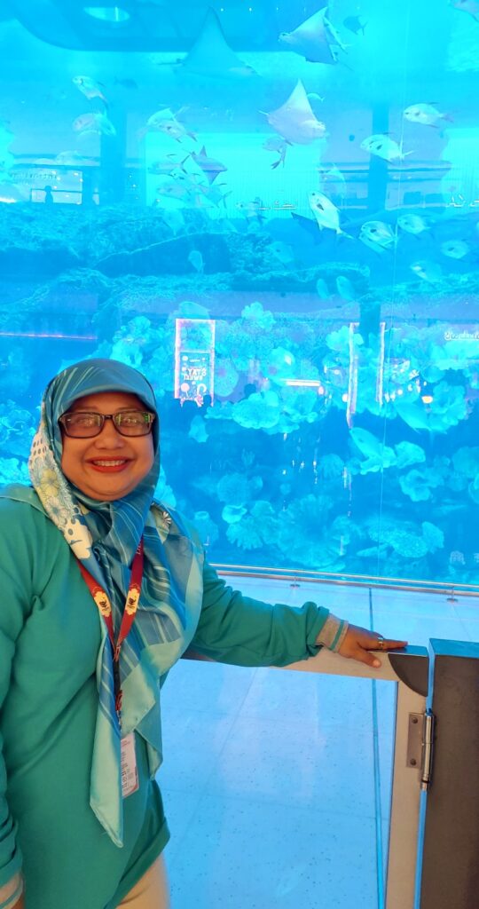Aquarium raksasa air laut di mall Dubai. Dokumentasi Ari Kinoysan Wulandari.