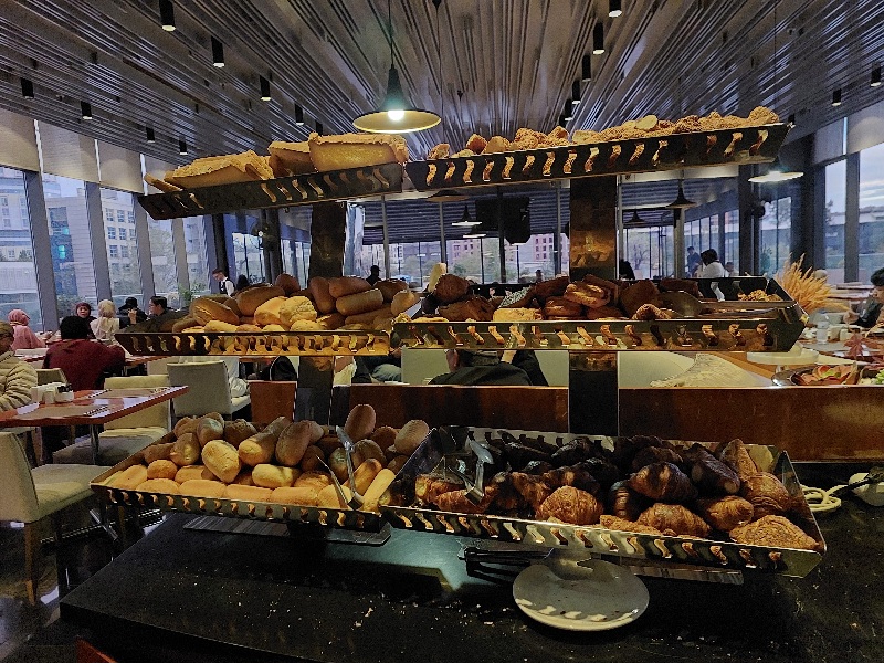 Pagi kami sarapan di hotel dengan makanan ala Turki (Eropa) nggak ada nasi, tapi full roti, olahan gandum, pasta, kentang-kentung, jus, susu, keju, selai, dll. Nggak sempat lapar, saya makan yang versi lidah bisa saya makan.