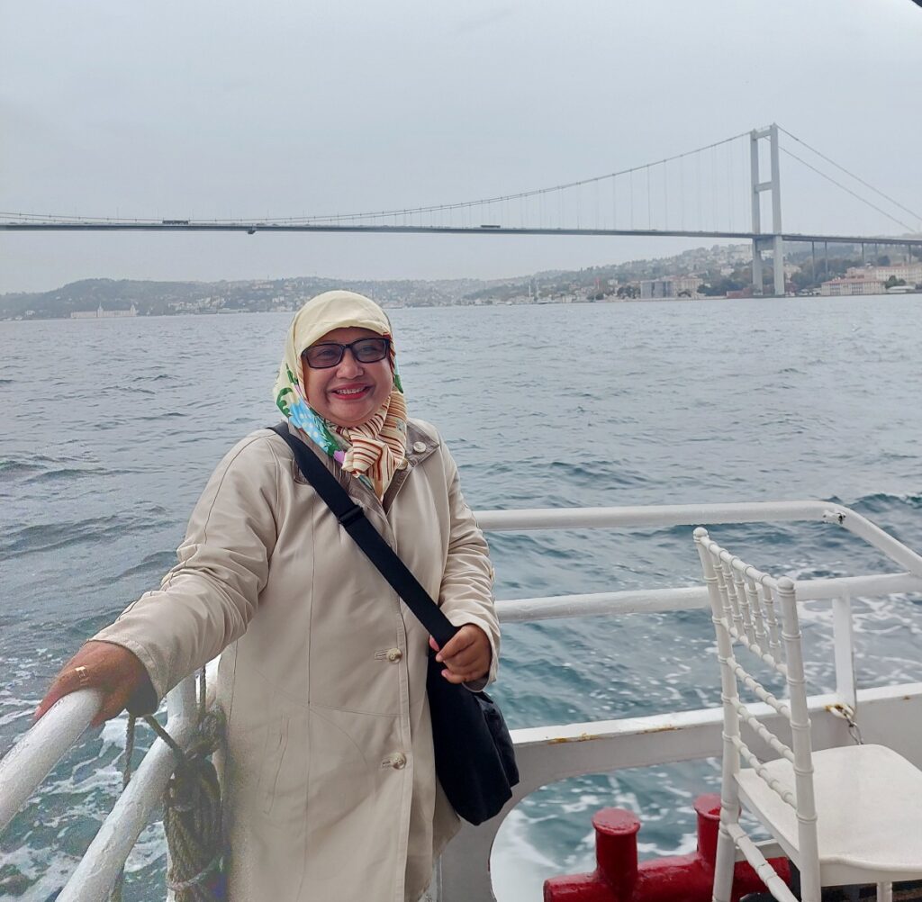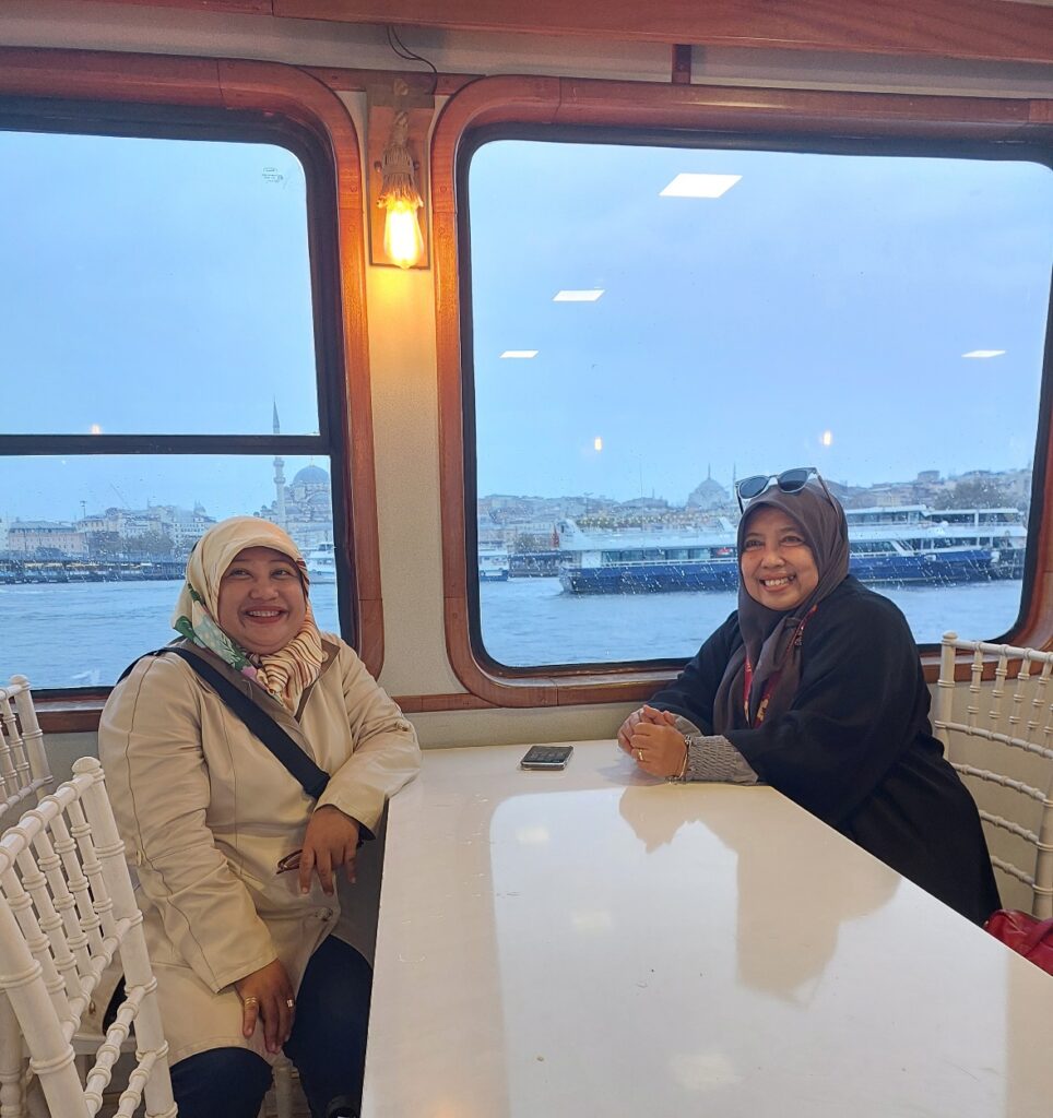 Saya dengan Bu Yuli. Di dalam kapal untuk keliling Bosphorus. Dokumentasi Ari Kinoysan Wulandari.
