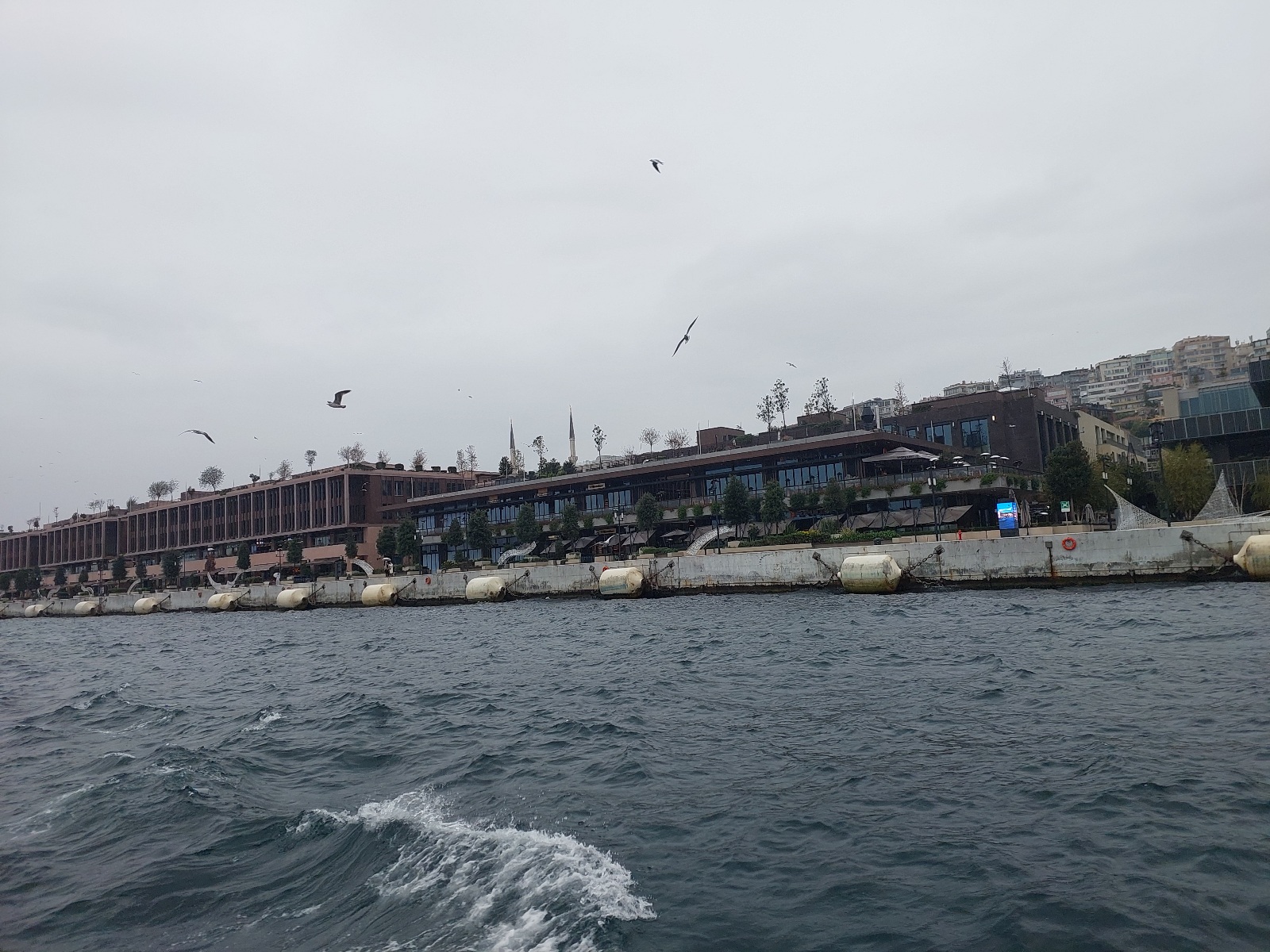 Eh beneran lho, kalau kamu jago motret, pasti ada ratusan foto yang bisa kamu jual via aplikasi online. Setiap sudut Bosphorus ini memancarkan kekuatan sejarah dan tradisi yang kental. Burung-burung terbang rendah begitu cantik. Rintik hujan dan mendung pekat, seolah nggak menghalangi mereka menjemput rezekinya masing-masing.
