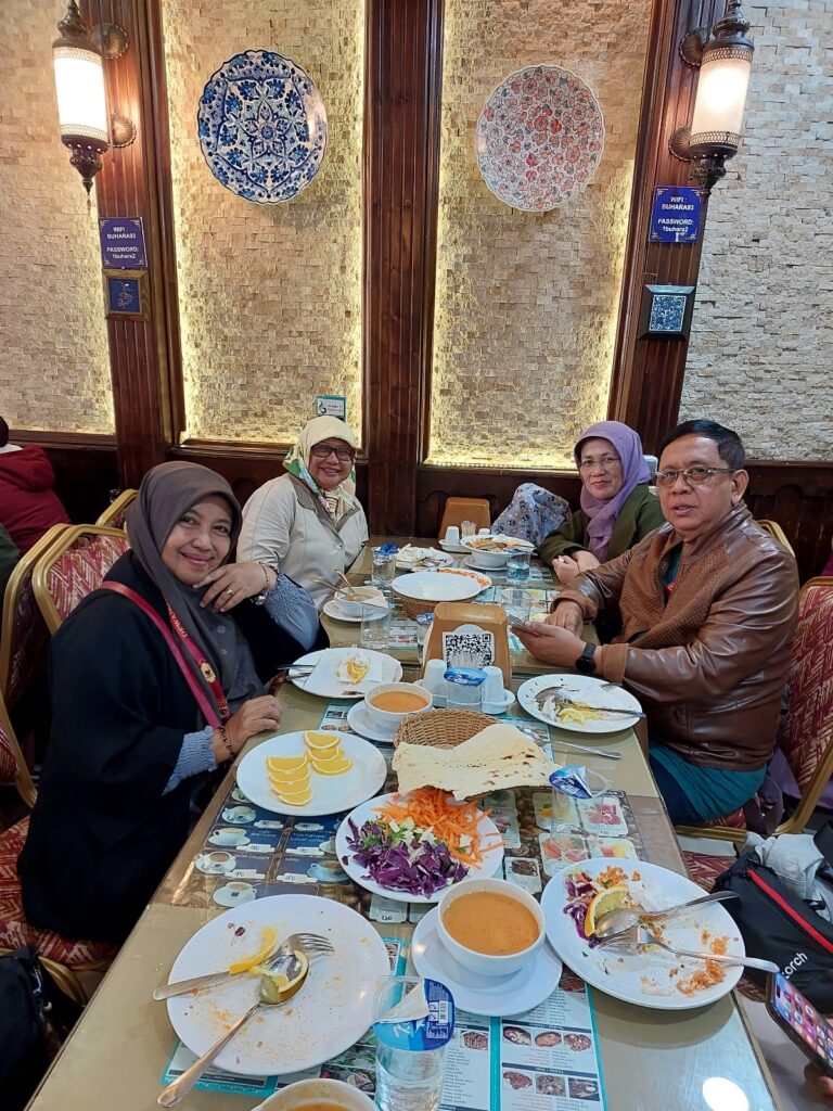 Setelah itu kami makan siang. Sik lali saya nama restonya apa ya? Itu di dekat areal perbelanjaan oleh-oleh, tapi makanannya khas Turki banget. Ya nanti kalau ada fotonya saya sebut namanya.