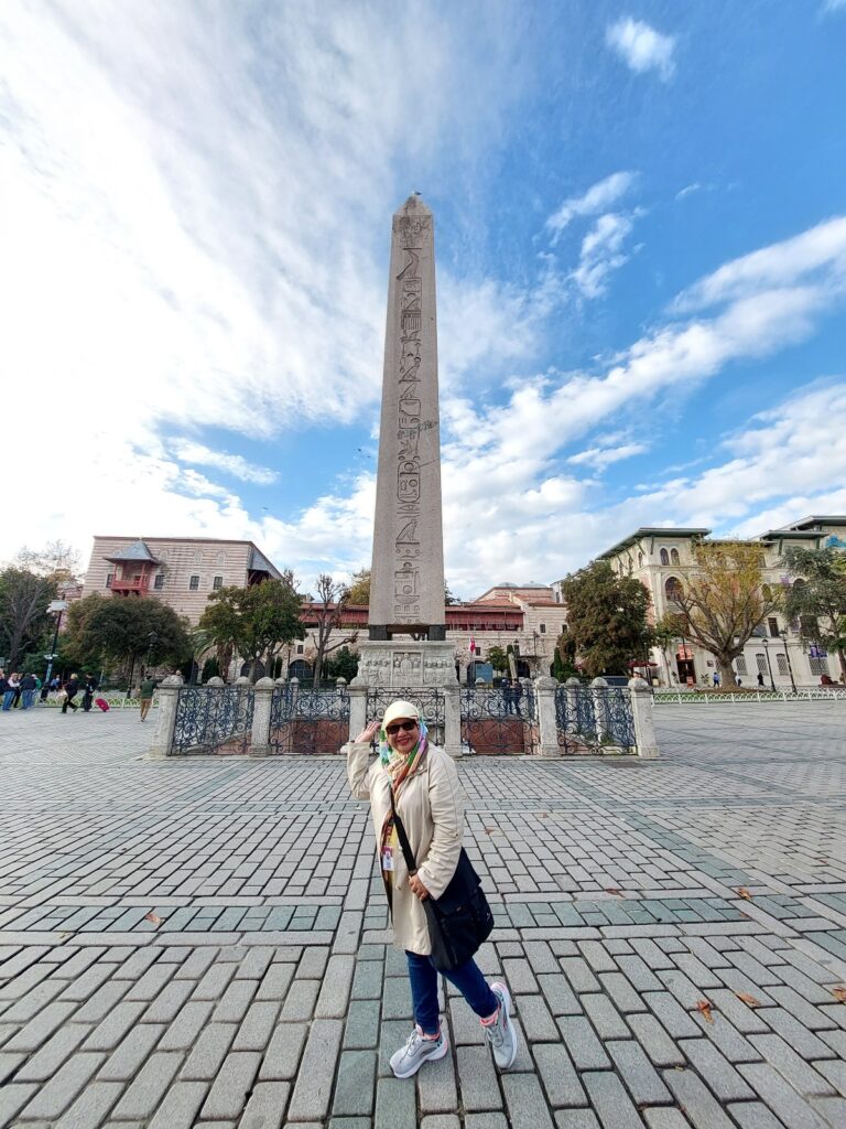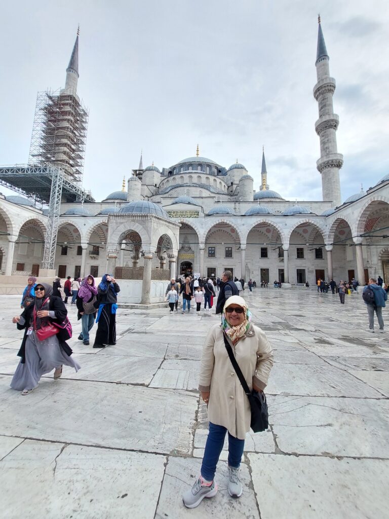 Saat mendekat ke kawasan Sultanahmet, Masjid Biru menjulang di kejauhan, kubahnya berlapis-lapis seakan memanggil. Ada ramai orang berfoto di sini. Saya sempat terpesona dengan masjid cantik ini. Hingga diingatkan Gus Faqih mengikuti rombongan. Kalau nggak, mungkin saya lebih lama di tempat ini. Masjid, versi saya memang punya daya tarik tersendiri bagi saya pribadi. Setiap piknik, saya pasti berusaha mencari masjid. Bahkan di negeri-negeri komunis seperti Vietnam dan China; mesjid terasa seperti oase yang menyejukkan hati.❤