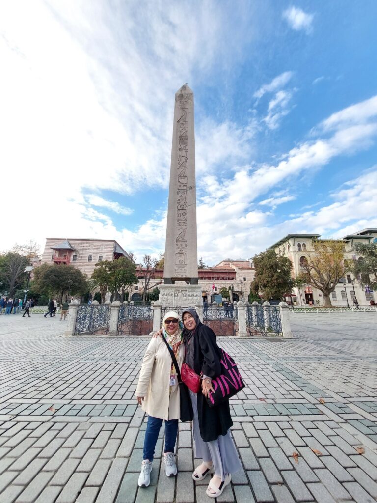 Saya dan Bu Yuli di jalur pedestrian menuju lokasi wisata komplek istana Sultan Ahmed (Mehmed). Dokumentasi Ari Kinoysan Wulandari.