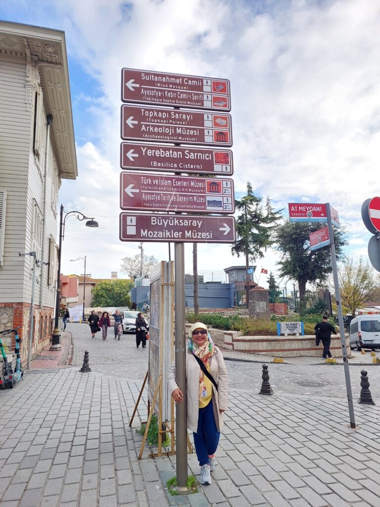 Usai makan… Cuuuz… Kami jalan ke areal Sultan Mehmed, areal Hagia Sophia. Tempat wisata ikonik di Turki. Pokmen kalau sampeyan ke sini, itu formasi atau struktur tempat dan bangunannya setipe dengan areal Malioboro ke arah istana Jogja. Inget-inget areal pariwisata seputar titik 0 km Jogja wes. Ada keraton/istana, mesjid, kaki lima (Malioboro), museum, dan taman-taman😁😅