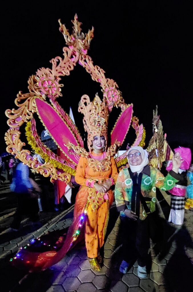 Sungguh elok dengan kostum berat dan atraksi sejak siang s/d malam, mereka tetap senyum saat dimintain foto. Dokumentasi Ari Kinoysan Wulandari.