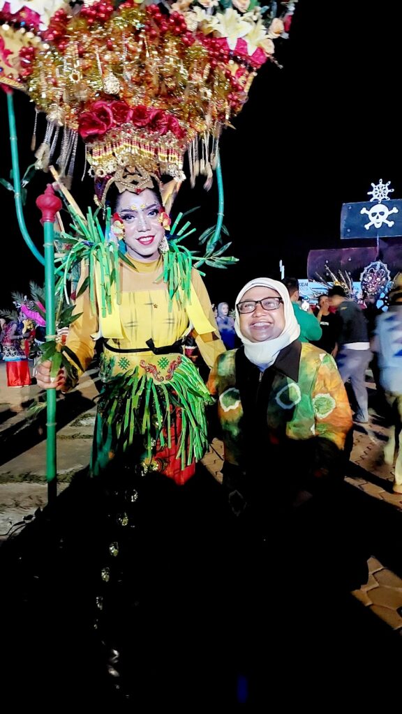 Entah sudah sampai karnaval dari kecamatan mana waktu Pak Ode balik. Saat mendengar Pak Ode berbicara dengan orang lain, si ibu tadi mengenali logat bicaranya sebagai orang lokal. Saya ngikik aja, mendengarnya bertanya asal usul Pak Ode. Hehe… pasti tadi dia juga mengenali saya sebagai orang asing non lokal dari logat bicara saya.
