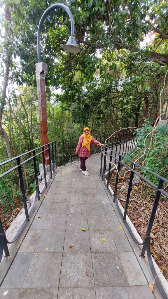 Mo foto-foto sakbosennya nggak ada yang melarang di sini. Mo duduk-duduk lama yo boleh. Mo ikut makan buah-buahan yang jauh di tempat itu yo bisa. Lumayanlah jaraknya, tapi nggak terasa bikin capek di kaki saya. Berarti cukup pendek meterannya 😂 Di sekitaran situ juga ada pohon kemiri, pohon jeruk, jambu monyet, dll.