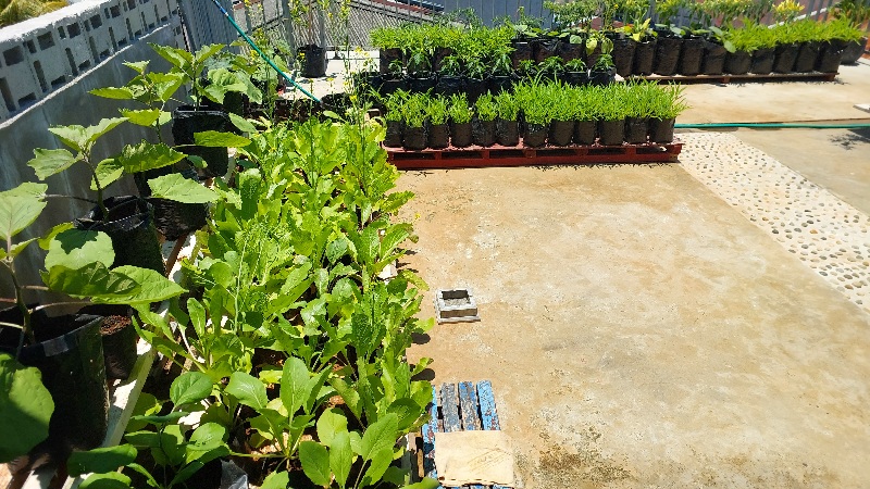 Di tempat Bu Tuti ada tomat, cabe, kangkung, terong, dll sayuran yang tumbuh subur. Padahal itu langsung kena panas matahari. Pasti nyiraminnya kudu ekstra. Pas saya nanya, bikin dan ngurusnya sampai berbuah sekitar 2 bulan. Itu kerjaan Pak Damrin waktu libur kerja. Ya pantes, pikir saya. Jadi kalau mau beresin lantai atas rumah saya untuk bikin tanaman gitu, ya cuti saja 2 bulan 😂😜 Wahaha…. Bisa bisa saya diomelin dari kaprodi s/d rektor itu mah🤣