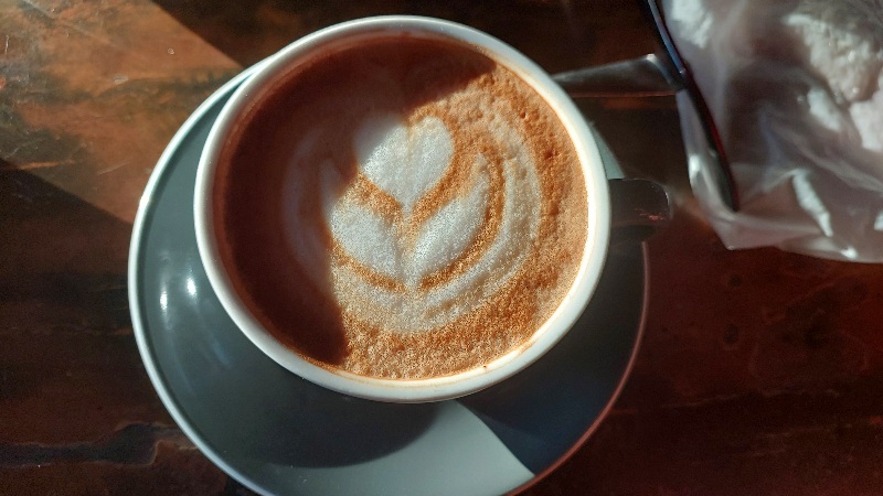Ini cappucino di kafe dekat Marina Togo. Saya merasakan aneka “rempah” tapi nggak bisa mengidentifikasi satu per satu; superenak, beda dengan cappucino yang biasa saya minum. Dokumentasi Ari Kinoysan Wulandari.