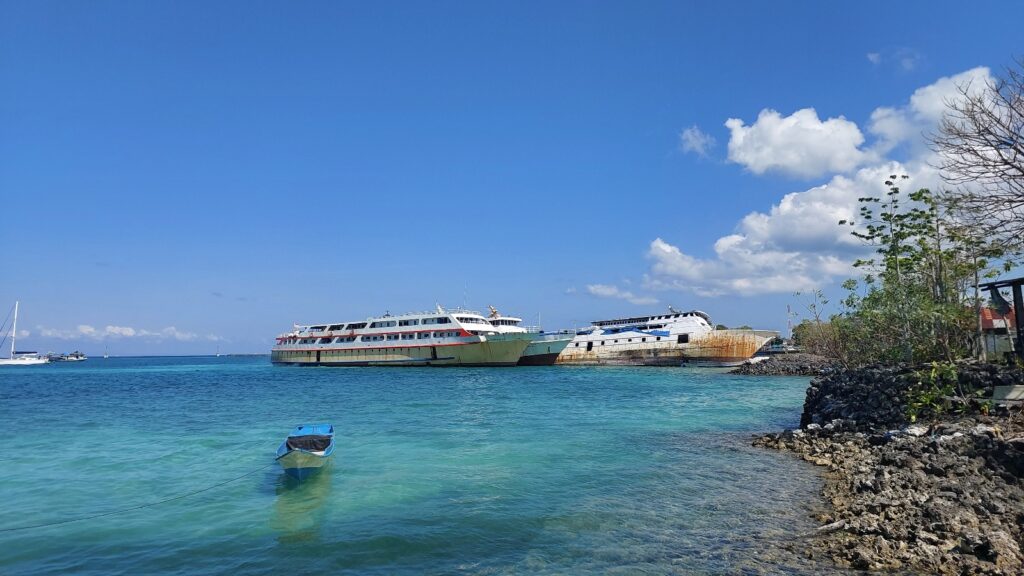 Saya nggak ingat pasti sebelum ke dermaga yang menuju Kapota itu, Pak Ode ke mana saja. Orang satu ini embuh, energinya kayak nggak pernah habis. Pokoknya kelihatan banget dia niat tenan menunjukkan berbagai tempat agar saya tahu detail semua wisata di daerahnya. Itu pun kami masih di Wangi-Wangi doang. Belum pulau-pulau lain di Wakatobi.