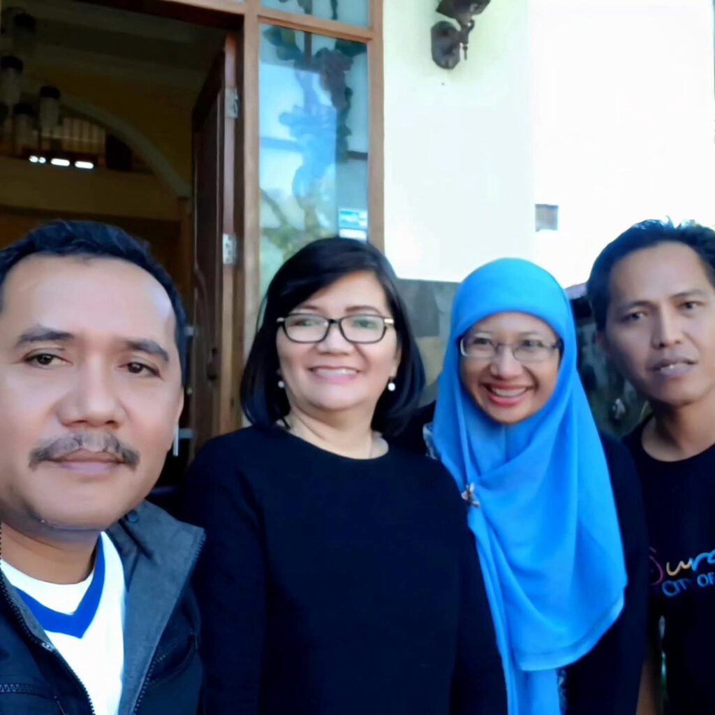 Pak Ode, saya, Bu Tuti dan suaminya (Pak Damrin) di sekitaran resor pantai. Dokumentasi Ari Kinoysan Wulandari.