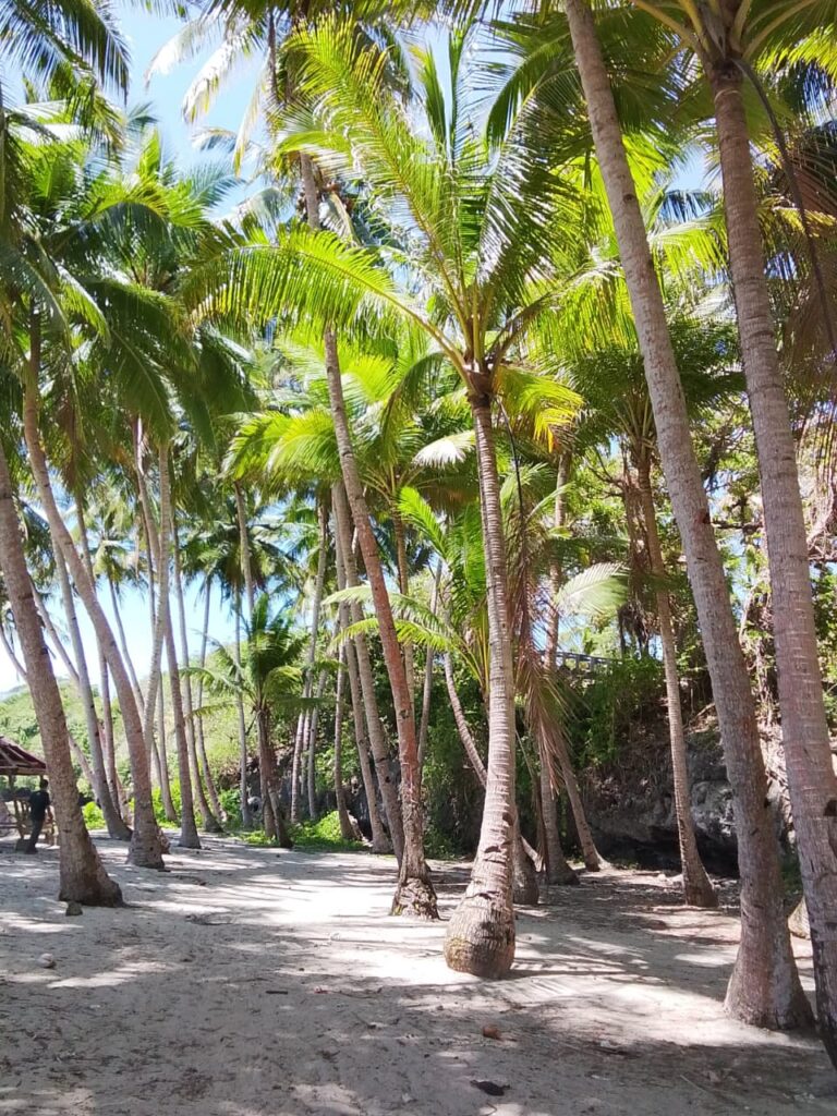 Pantai Untu Waode. Areal ini banyak pohon kelapa. Dokumentasi Ari Kinoysan Wulandari.