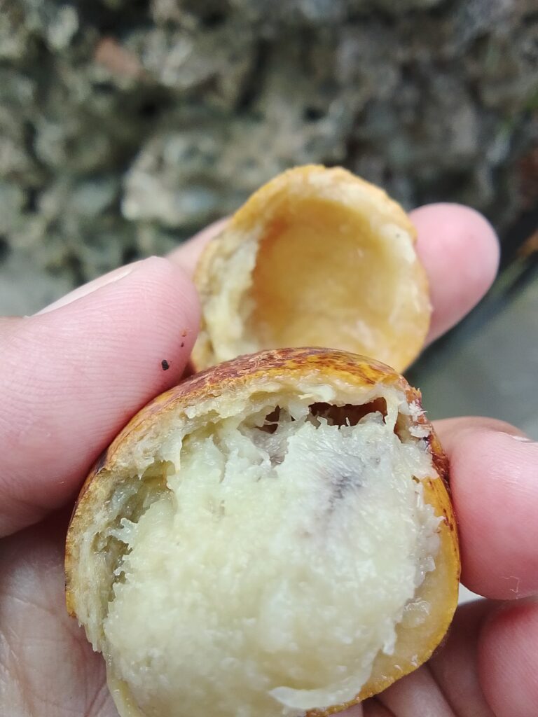 Buah lokal yang saya juga lupa namanya. Buah ini bisa dimakan dan banyak ditemukan di sekitar jalan benteng Liya Togo. Dokumentasi Ari Kinoysan Wulandari.