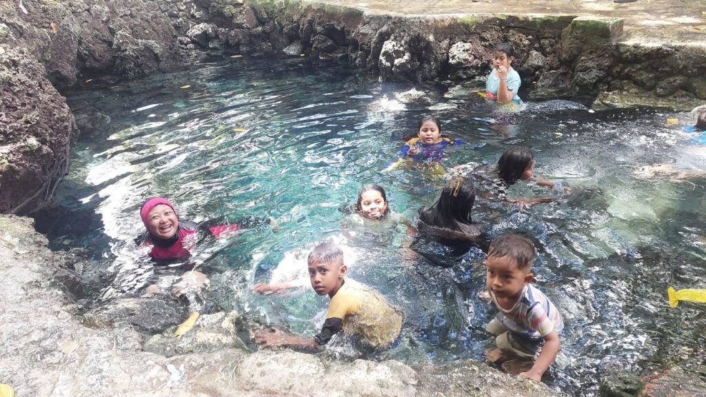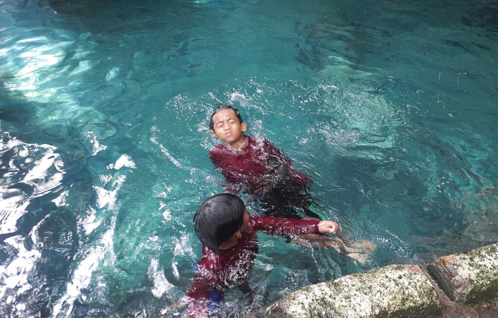 Anak-anak gembira saja naik turun sumber itu. Banyak yang wes jago renang dan nyelam. Dokumentasi Ari Kinoysan Wulandari.